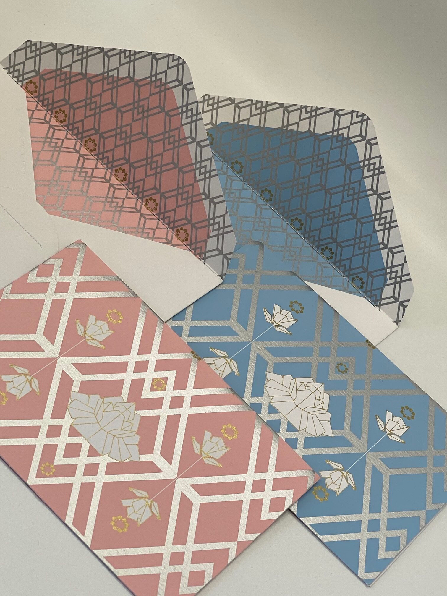 Floral Origami inspired notecard designs in soft pastel colours, that blend the elegance of folded forms with the softness of blooming petals.This design captures the delicate harmony of structure and nature, unfolding beauty in every intricate detail.