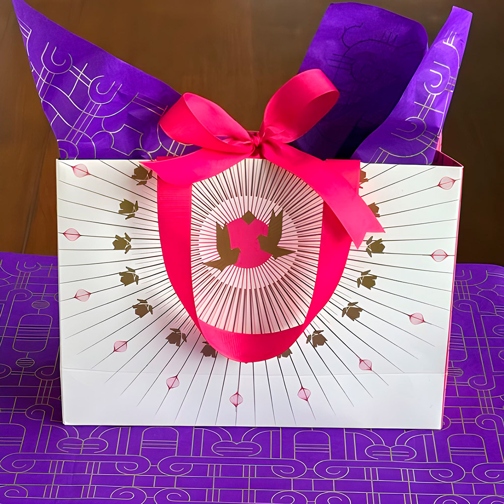 Make a statement with our signature gift bags— all you need is the gift, we got the rest covered. Secure your gift with a second ribbon in the middle, tie the bow and you’re done with your statement packaging in minutes.